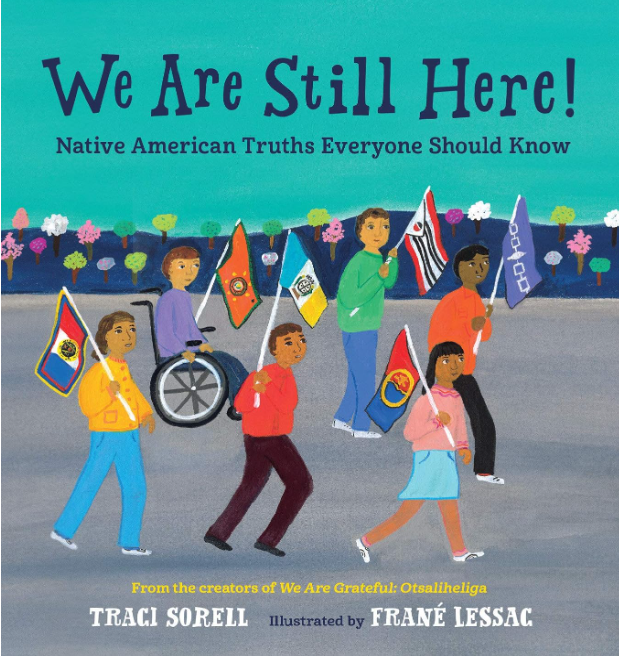 We Are Still Here!: Native American Truths Everyone Should Know is a powerful 2022 picture book for ages 5-9 by Traci Sorell presenting historical and contemporary Native American struggles, laws, and victories. In precise, lyrical text and striking illustrations, twelve Native kids affirm their ongoing resilience, from forced assimilation to self-determination. An eye-opening work that fills in the missing Native history in children’s education.